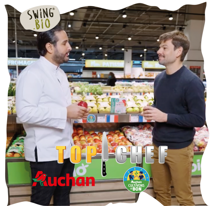 Baptiste, producteur de Swing.bio a rencontré le chef Mohamed Cheikh gagnant de TopChef saison 12 sur M6 dans le cadre de notre partenariat avec la filière Auchan « Cultivons le bon » 🍎🍎 Le chef Mohamed Cheikh nous dévoile une belle idée de recette avec notre pomme Swing.bio sucrée et goûtue ! LIEN DE LA VIDÉO